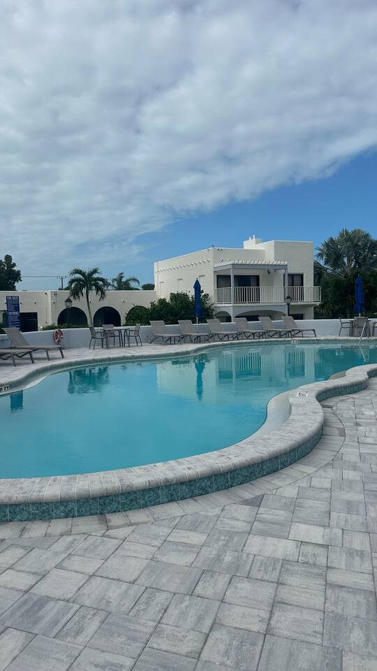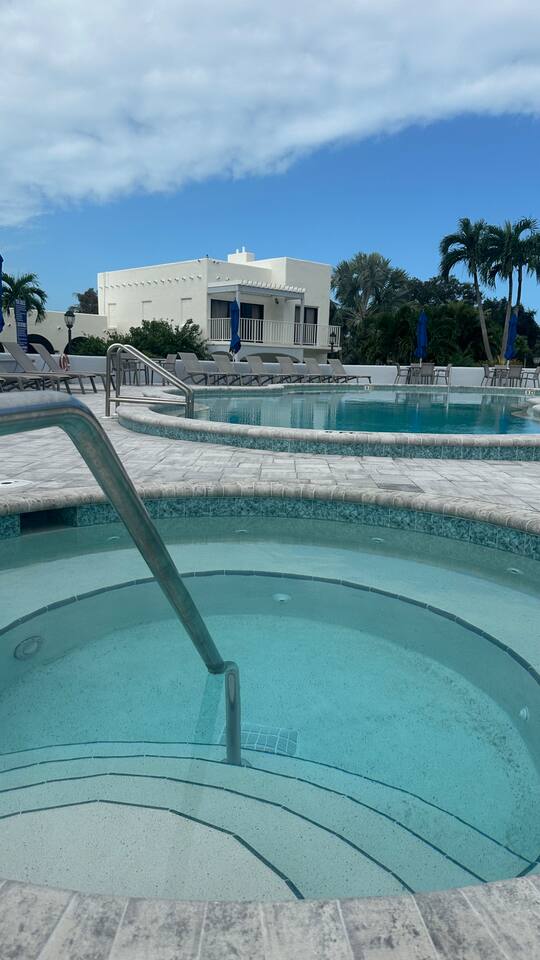 The restaurant/café is open next to the swimming pool only for 8 months a year and they have very reasonable priced great items they cook with full bar available. It is currently open for our guests to use. The Condo is always meticulously clean, and floorings are steamed after each guest. Our goal is to exceed your expectations.