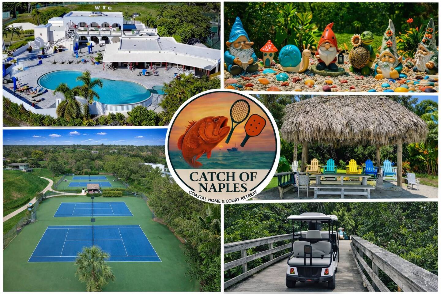 ✨ Introducing Catch of Naples ✨ Wake to palm-filtered sunlight and the sound of tennis balls in play. At Catch of Naples, days flow between matches, margaritas, and sunsets. 🎾 World Tennis Club has 16 tennis & 4 pickleball courts, 2 pools, hot tub & sauna. 🏖️ Just 4 miles to Naples beaches & 10 min to downtown. 🚲 Bikes, chairs & umbrellas included. 🌴 Relax on the lanai. 🌞 Kids can safely play in gated community. 🌐 Guests recognize us as Catch of Naples — read the reviews and see why!