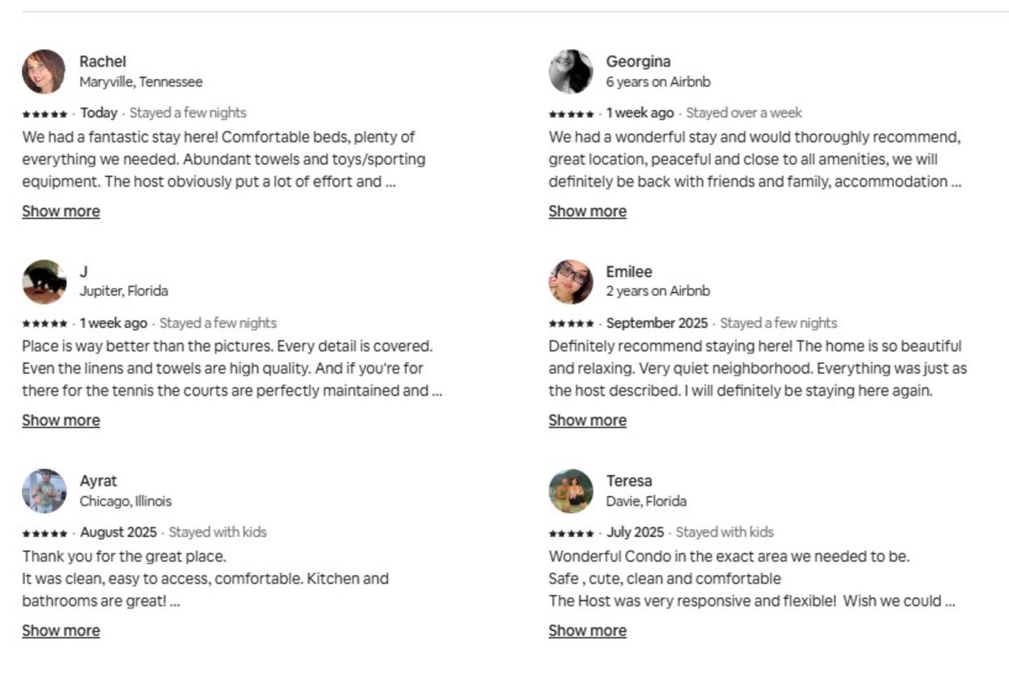 Feeling overwhelmed by options? We just dropped our rates 25% to make your decision easy. the property offers the best value in the area. Guests rave about the heated pool, hot tub, and sauna. Were located in the central Naples and close to everything and just 3 miles from the beach. Bruce N ⭐⭐⭐⭐⭐ LOOK NO FURTHER!! This is the home you want when visiting Naples. Teresa ⭐⭐⭐⭐⭐Wonderful Condo in the exact area we needed to be. J ⭐⭐⭐⭐⭐ Place is way better than the pictures. Every detail is covered. Read all the details below.... 🌴 Discover your perfect getaway at this exquisite Naples condo, just 3 miles from stunning beaches. Unwind with poolside cocktails or play a match on our 16 tennis courts. Dive into luxury, style, and sunshine—your dream vacation starts here. Book today to embrace relaxation and adventure in an unforgettable setting! 🛌 PROPERTY 🛋️ Living & Dining Step into a beautifully designed open-concept living space featuring a sleek white leather sectional—a perfect spot to unwind with a glass of wine or catch a movie on the 75" Smart TV. Wrapped in soft throws and bathed in natural light, this lounge area offers both sophistication and comfort. 🍽️ Gourmet Kitchen — Where Style Meets Function Indulge your inner chef in a beautifully appointed kitchen that goes far beyond the basics. Savor crystal-clear water from the premium reverse osmosis system—a rare touch that elevates every sip and every simmer. Begin your mornings with the aroma of freshly ground beans from the whole-bean coffee machine or opt for the ease of the classic drip brew—because every guest deserves their perfect cup. With high-quality cookware, stylish dishware, and thoughtful extras throughout, this kitchen turns everyday routines into luxurious rituals. ✔ Two spacious bedrooms: a master with a king-sized bed and ensuite, along with a room featuring three twin beds ✔ Modern kitchen equipped with top-notch stainless-steel appliances and a newly installed osmosis filter ✔ Inviting living room with a 75" HDTV offering all your favorite streaming services ✔ Charming private patio/balcony with seating for morning coffees or evening relaxation ✔ All essentials included: high-speed Wi-Fi, in-unit washer and dryer, and reliable central air conditioning ✔ Family-friendly amenities like high-chair, crib, pack-and-play, toys, and board games 📅 GUEST ACCESS ✔ Full access to 16 tennis and pickleball courts for your daily sporty endeavors ✔ Beautifully heated outdoor pool and inviting jacuzzi for relaxation under the sun ✔ Fully equipped fitness center and dry sauna to keep up with your wellness routine ✔ Scenic walking pathways surrounded by lush tropical landscapes ✔ Poolside café serving delicious snacks and refreshing drinks, open from September through May OTHER DETAILS TO NOTE ✔ Enjoy the cleanliness of a professionally maintained property post each visit ✔ This is a non-smoking zone to ensure a fresh and clean atmosphere ✔ Welcome long-term stays, perfect for remote work situations ✔ Effortless self-check-in with a convenient keypad system 💼 Business-Friendly Amenities for a Productive Stay: Fast & Reliable Wi-Fi – Perfect for Zoom calls, streaming, or remote work Computer Monitor – Easily connect your laptop for dual-screen productivity Work Desk Area – Comfortable space to stay organized and focused Ergonomic Desk Chair – Ideal for longer working sessions USB Charging Ports & Outlets – Conveniently located for all your devices Printer Access (upon request) – Great for printing boarding passes or documents Quiet Environment – Peaceful surroundings, ideal for focused work or calls Gated Community Access – Added security for professionals on the go Free Onsite Parking – Easy access for corporate travelers with a vehicle Flexible Self Check-In – Arrive anytime with keyless entry for convenience NEIGHBOURHOOD DESCRIPTION A short 3-mile trip will lead you to pristine Naples beaches, perfect for a day of sunbathing and swimming ✔ Downtown Naples is a quick drive away, offering a mix of exquisite shopping and delightful dining experiences ✔ Local attractions include golf courses and the fascinating Naples Zoo—ideal for a family-friendly adventure ✔ Rich in culture, the area boasts art galleries and museums to explore, perfect for a leisurely day out